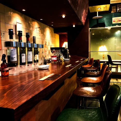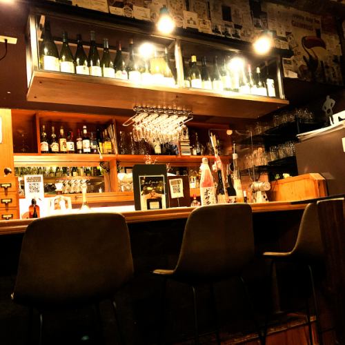 【ワインカウンター】ソムリエが目の前にいるカウンター。お一人様をはじめ、ご友人同士やカップルなどどなたでも気軽にお立ち寄りいただけます(火曜日はソムリエ不在です)。